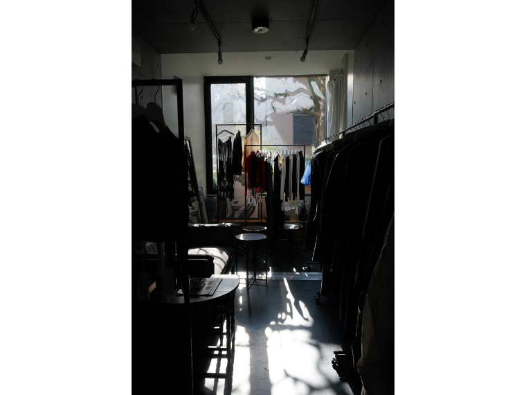 アトリエが入る建物は、自然光の変化をとらえる空間の設計になっている。打ち合わせなどにも使っていた窓際のスペースの「光の入り方がとても好きで、ブランドの一面が伝わるし、店にしてもいいかなと思っていた」と竹内は話す。パーソナルな雰囲気でシーズンのコレクションを楽しんでもらい、在庫のあるアーカイブの販売、クリエイションの由来になったビンテージの古着の展示なども行っていく考えだ。「体に合った形で着用してもらいたい」と、お直しの無料サービスも目的の一つ。