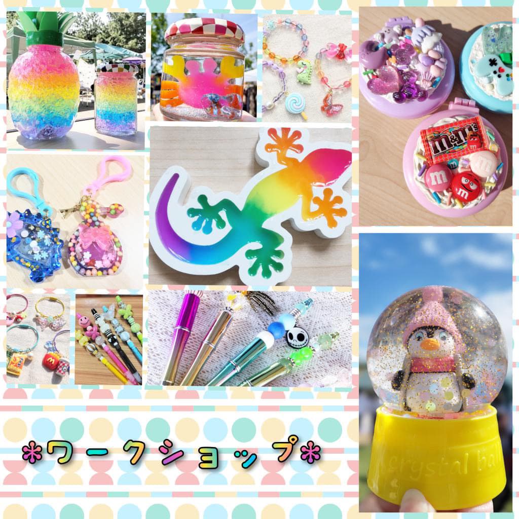 様々なオリジナルグッズ作りを楽しめるワークショップも登場。スノードームやジェルボトル、キーホルダー、カスタムペンなどの定番アイテムに加え、3Dブレスレットやホイップデコなど、豊富なラインナップがそろいます。好きな色やパーツを選びながら、自分だけの“世界にひとつのかわいいアイテム”を作ってみませんか。