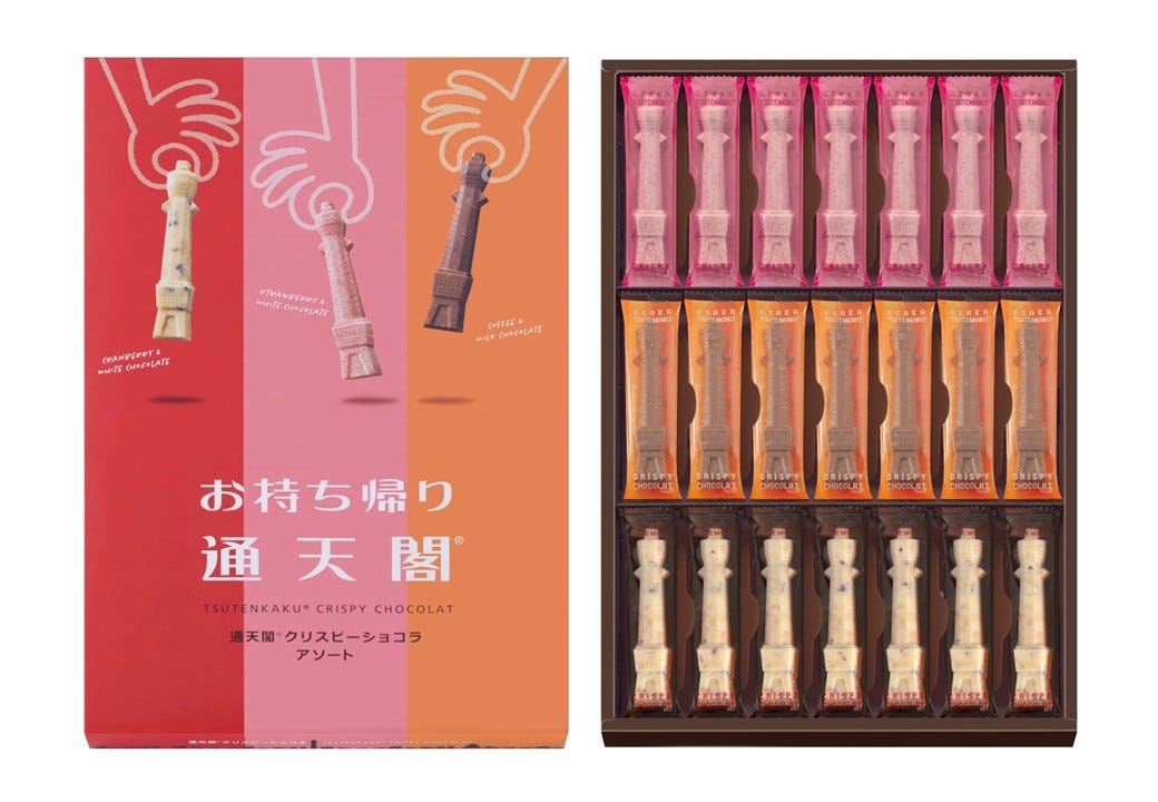 帰省の手土産としてよく買う「通天閣クリスピーショコラ」から、3種類のフレーバーが登場! ちょうどいい大きさなので、自分用にもゲットしたいです。