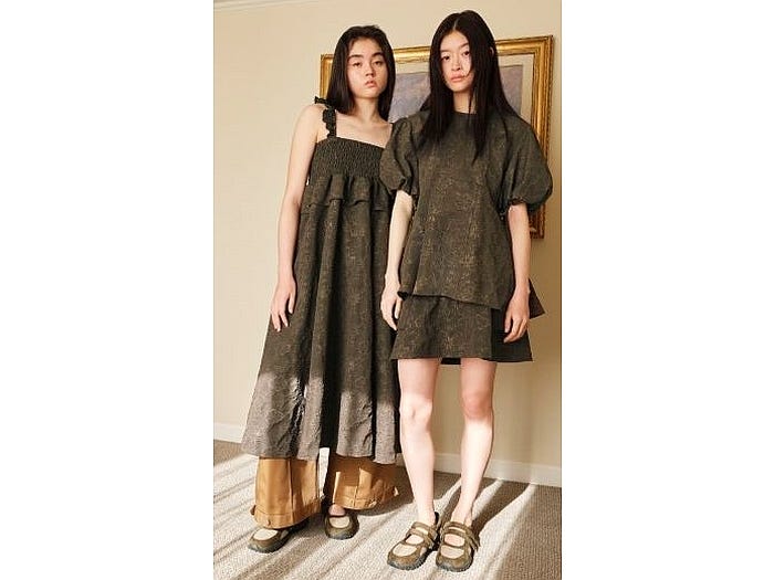 第4弾の今回はジャカードのバルーンスリーブチュニック(2990円)やドレス(4990円)、裾をボタンで留めてワイドシルエットとコクーンシルエットの両方を楽しめるバルーンパンツ(3990円)などフェミニンさと機能性を併せ持つデザインが特徴。メリージェーンのデザインにスニーカーソールの靴(2990円)もある。