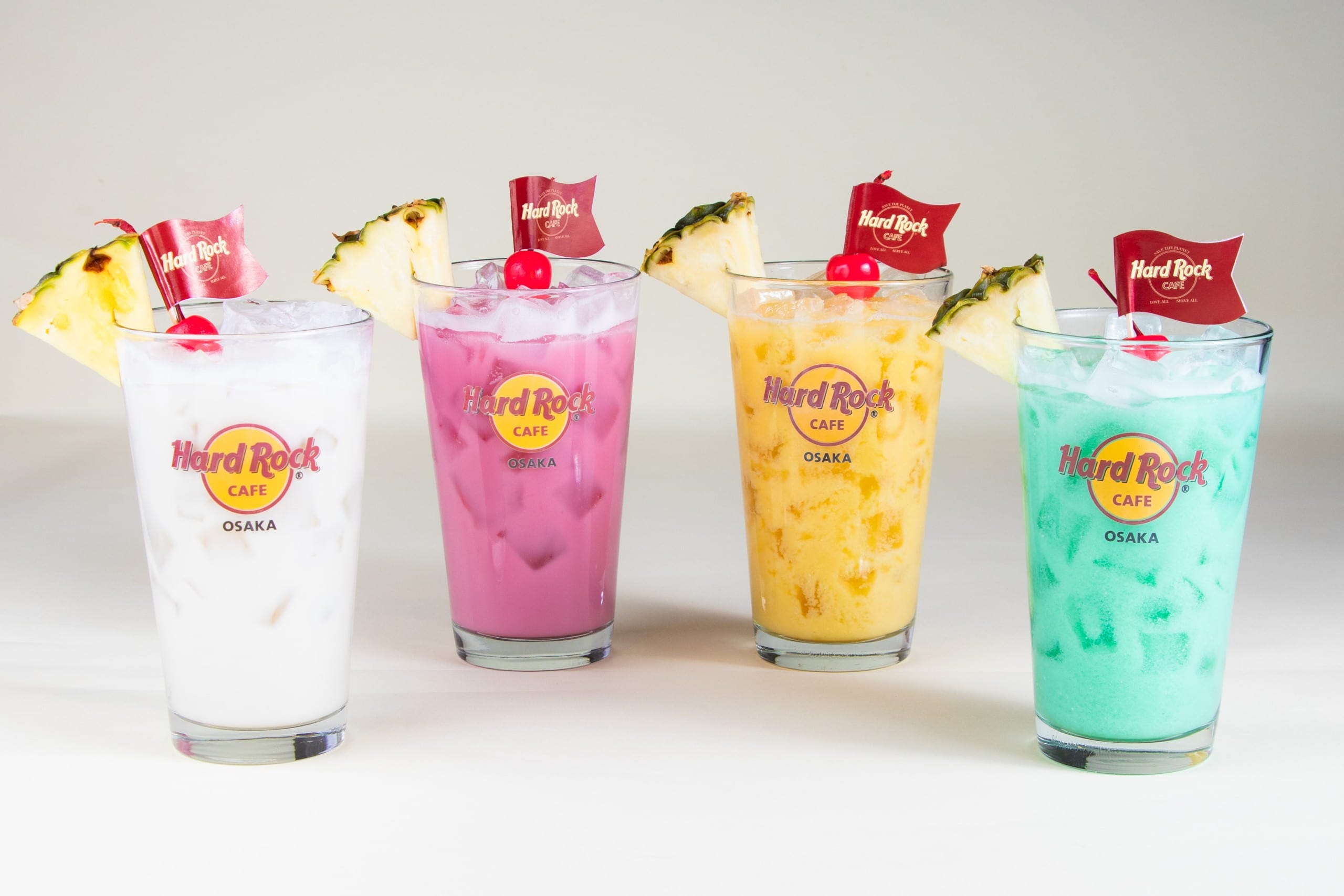 「バージン・ピニャコラーダ」(ブルー/ピンク/イエロー/ホワイト)(20oz/1,780円、16oz/1,180円) ドリンクは、ノンアルコールで仕上げた「バージン・ピニャコラーダ」が4種類登場。ココナッツクリームをベースに異なったフレーバーを合わせ、南国気分を味わえるドリンクとなっています。
