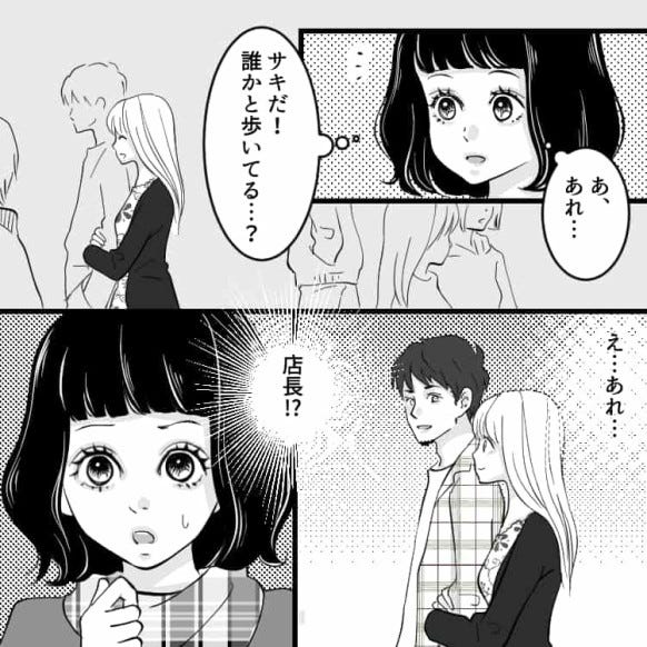 バイト仲間と店長が腕を組んで歩いている!?休日に【まさかの光景】を目撃してしまった主人公...一体どうする?