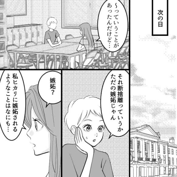 ある日ヒカリがSNSで「人間断捨離しよ〜っと」と投稿をし、その翌日から主人公はヒカリに無視をされるようになります。