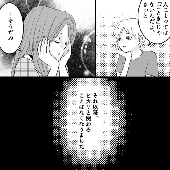ヒカリに無視をされて、『人間断捨離』をされたのは自分だったと気づいた主人公。