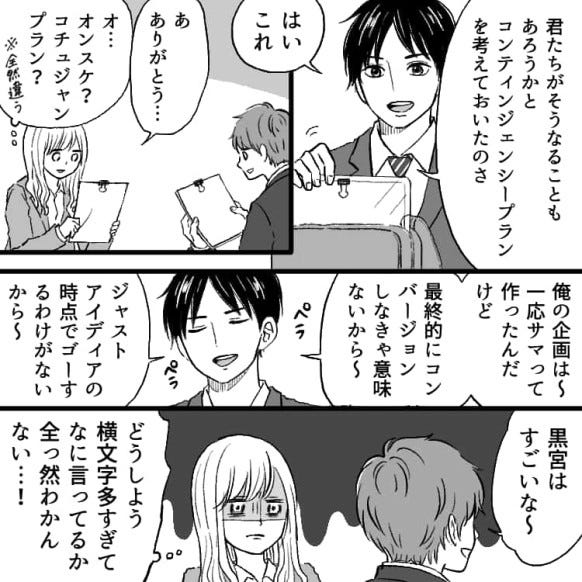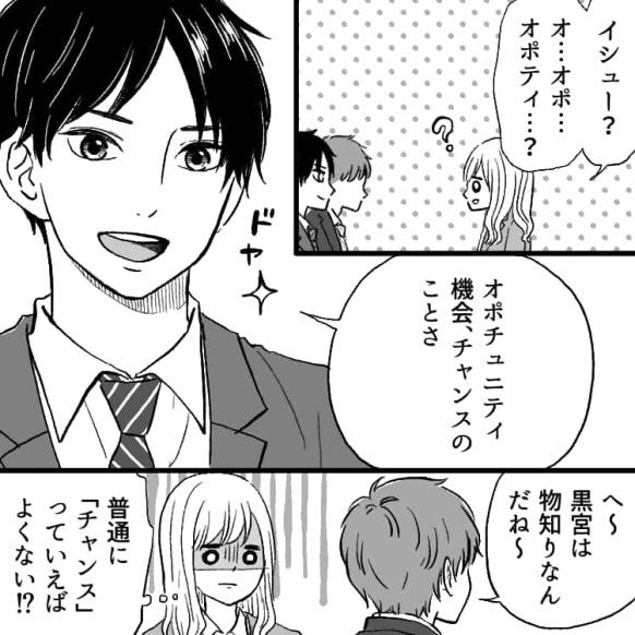 黒宮くんの横文字連呼により、話についていけない主人公。