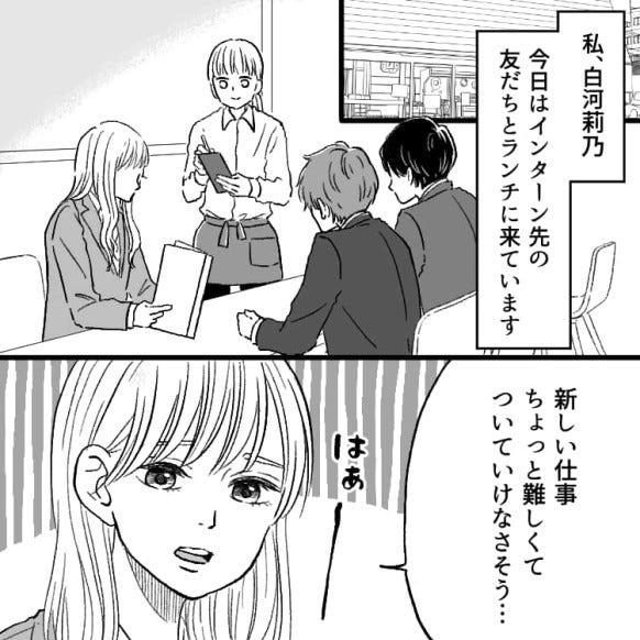 主人公はインターン先の友だちとランチをすることに。