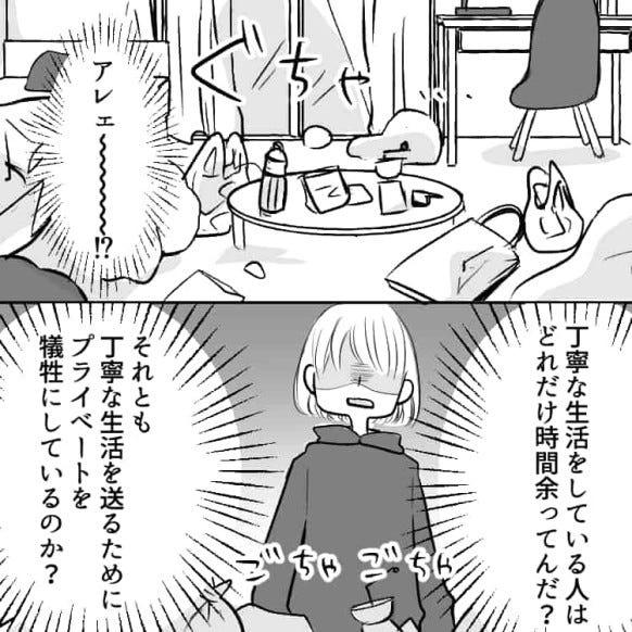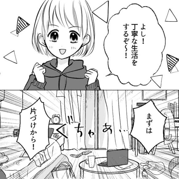 彼女が家に遊びに来るまでに、片付けをし丁寧な生活をすると決意した主人公。