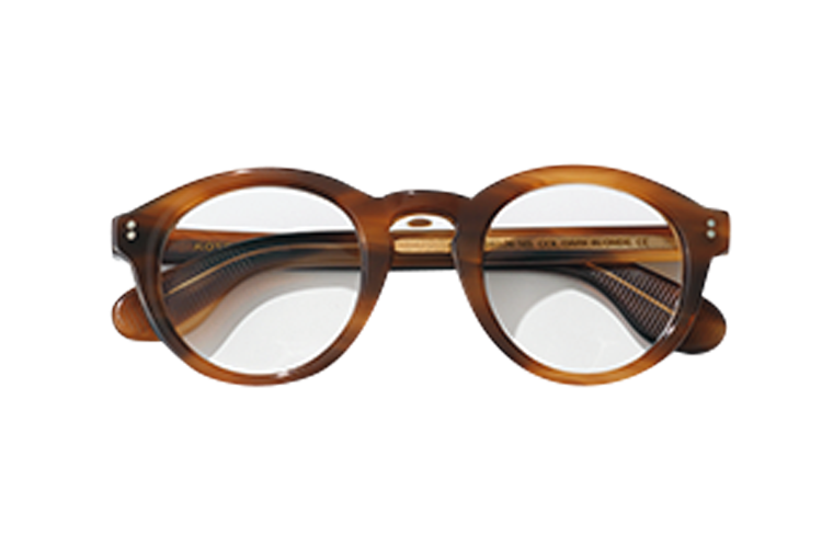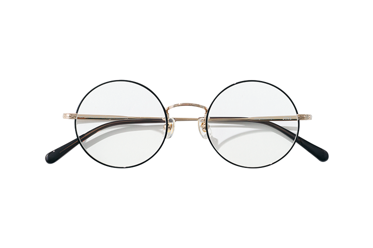 正円に近い丸メガネ。個性的+レトロな雰囲気を演出できる。