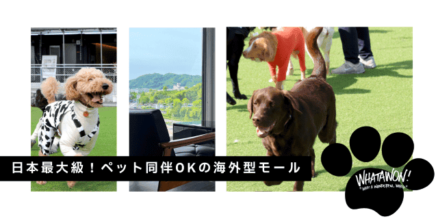 南大阪にある「WHATAWON」は、ショッピング・グルメ・宿泊・温浴まで楽しめる海外型エンターテインメントモール。ペットの同伴OKなので、愛犬と一緒にゆったりと過ごせます。