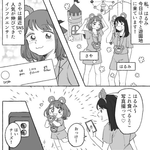 主人公にはさやという、インフルエンサーの友だちがいます。