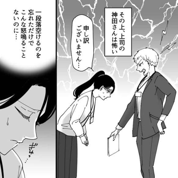 上司の神田さんは主人公に「人としてどうかと思う」とひどい言葉を浴びせました。