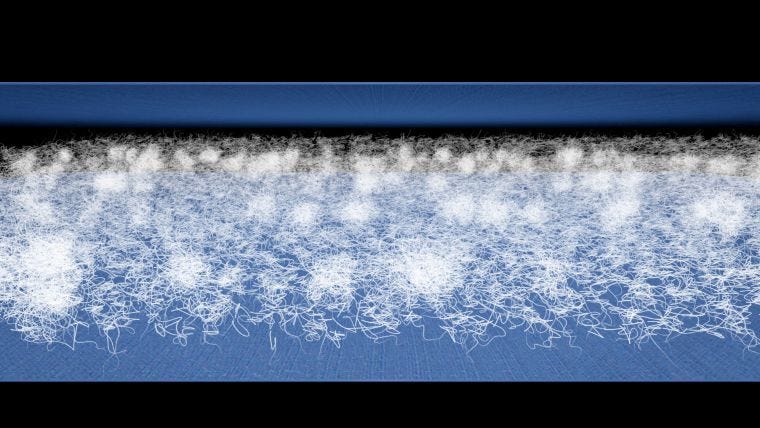 新たに開発したFBは、ファイバーボールとシートわたの良さを併せ持った、ボリュームのあるシートわただ。従来のファイバーボールはかさ高かつソフトなタッチでダウンのような外観を出せるメリットがある一方、縫製時にわたを封入する専用設備が必要で、着用の際は洗濯時のわたの偏りでコールドスポットが生じうるという欠点があった。FBは東レのリサイクルわた70%、低融点わた30%をミックス。これをファイバーボール状にした後に熱を加えてシート化することで、従来のシートわたになかったかさ高性と軽量性を両立、専用設備不要で製造ができるうえ、キルティングでダウンのようなボリュームを出せ、洗濯による偏りも防ぐ。今年から販売を本格化し、目付120グラムから販売スタートする。さらに高目付タイプの開発を目指し、寝袋など新たなアイテムにも展開したい考え。