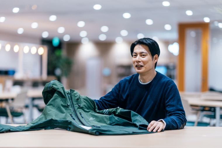 同時に、お客さんとのオープンイノベーションも大事にしています。アウトドアなんかでは、われわれの知識が及ばない部分があるんですよね。お客様の方が高い専門性を持っておられるので、そういう知識をフィードバックしていただいて、一緒に作ることを大切にしています。例えばハンティング用途では、「2週間山にこもっているときに激しい雨が降ってくるとわたが水を吸い込んでしまい、なかなか乾かない」という課題を聞かされ、これが撥水性を付与して水濡れや保水を防ぐ「WR」の開発につながりました。