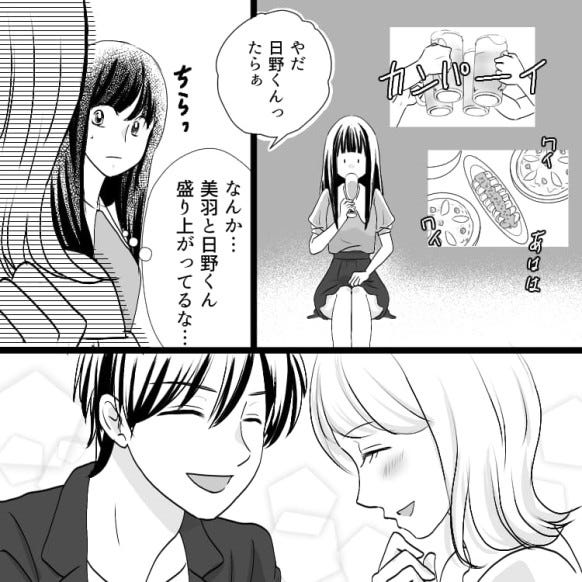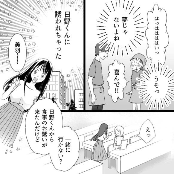 主人公は日頃から恋愛相談をしていた友だち・美羽を誘って食事会に行くことになりますが……?