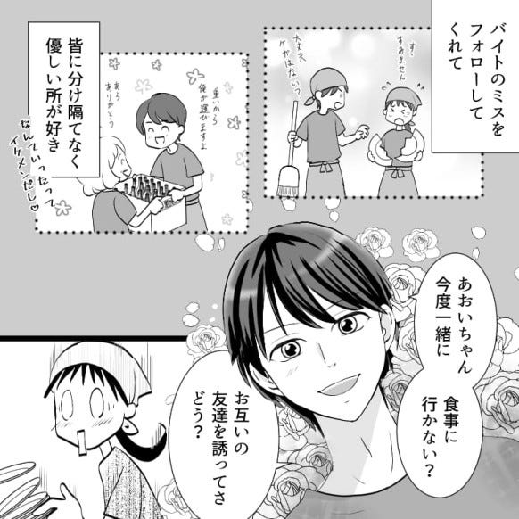 ある日、主人公は日野くんに「お互いの友だちを誘って、食事でもどう?」と誘われます。