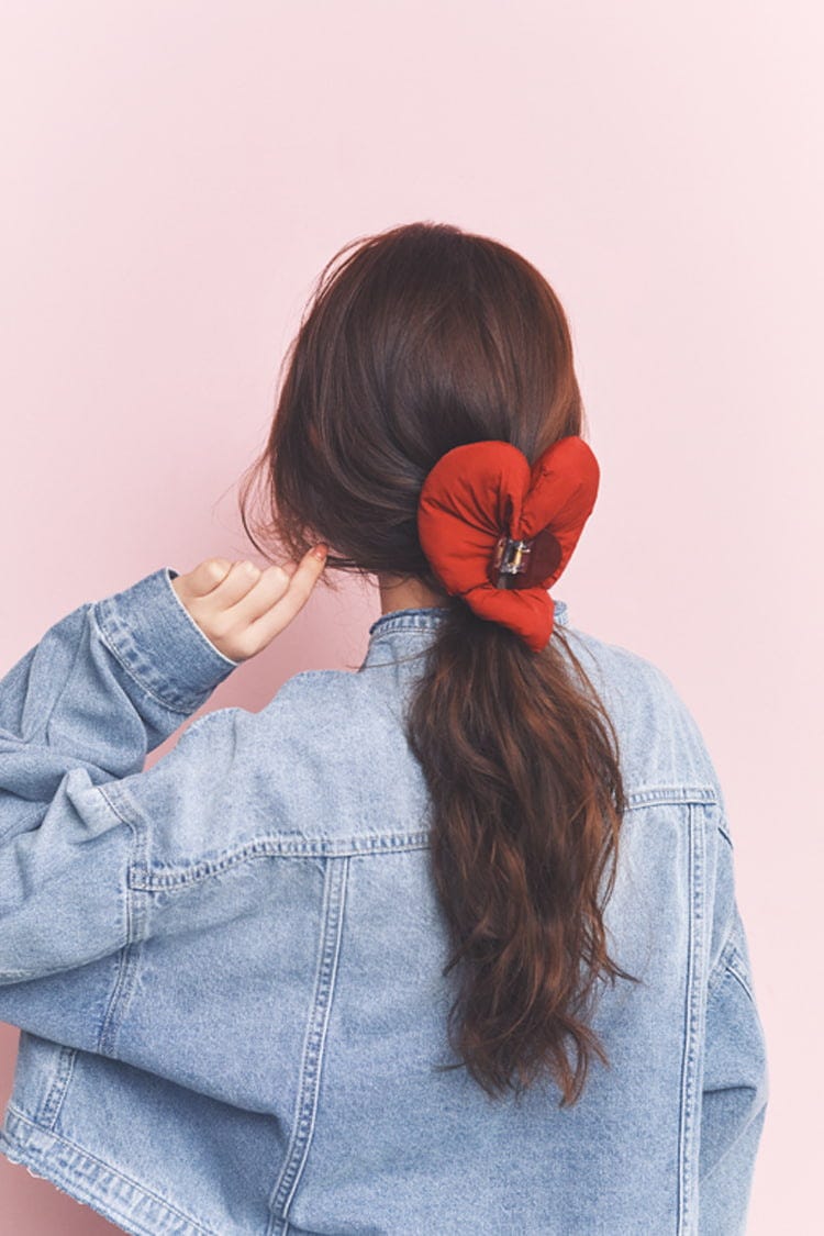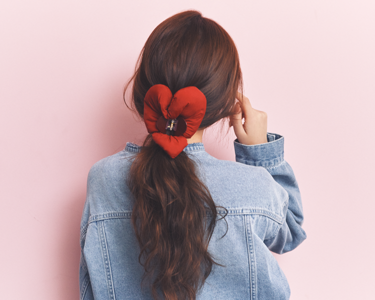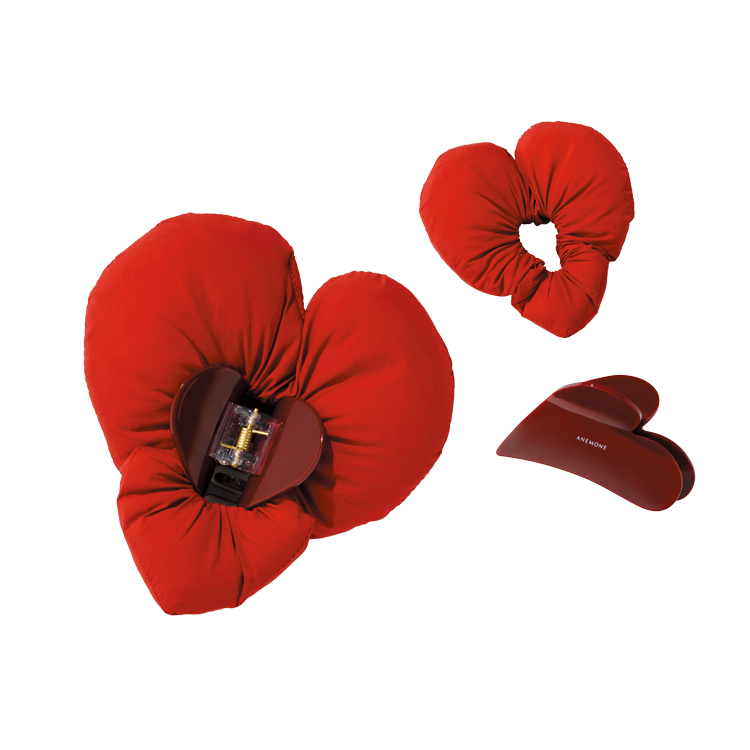 ハート型のヘアクリップに重ねづけできる、ハート型シュシュのセット。