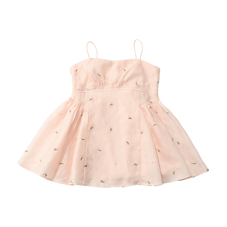 やわらかいニュアンスでまとめた、ナチュラルガーリーコーデ。カーディガンとあわせて温度調整も可能♡