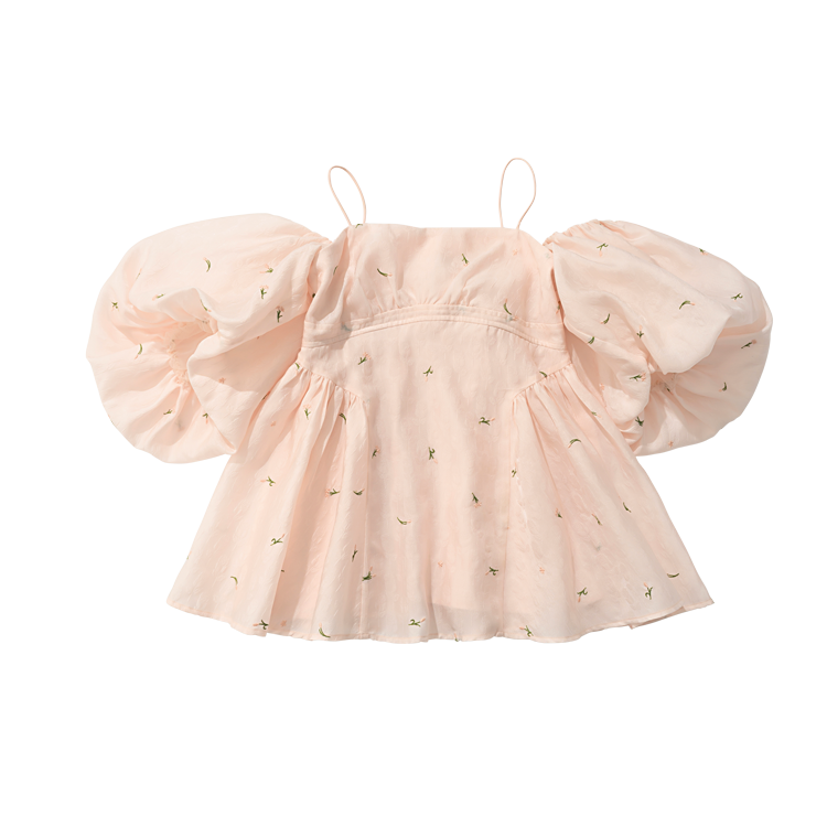 圧倒的ビジュ映えなボリューム満点のパフスリーブがおかわ♡ デコルテあきできゃしゃ見えも。そでは取りはずし可能で、キャミとしても使えちゃう。