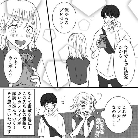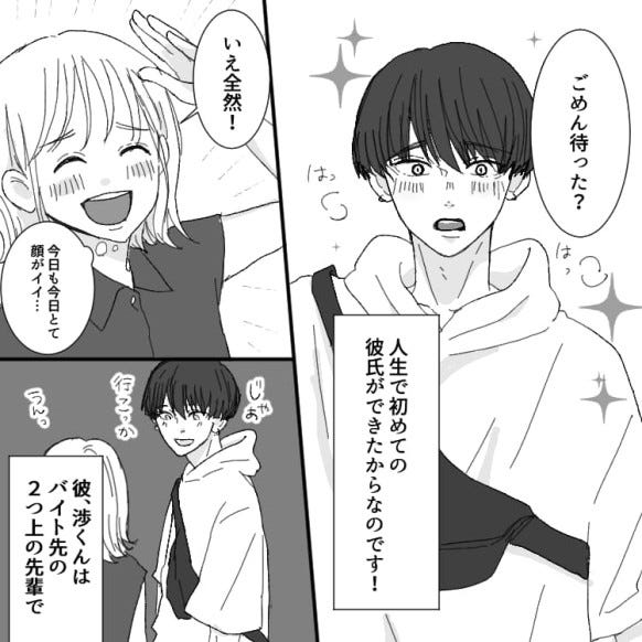 最初は自分にやさしい彼氏に胸をときめかせていた主人公。