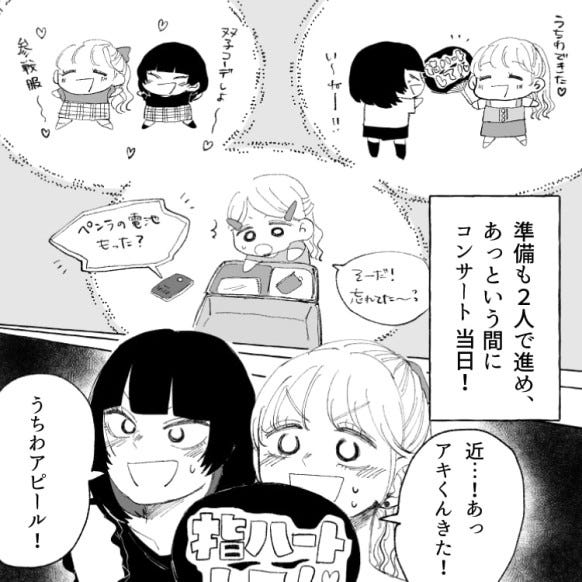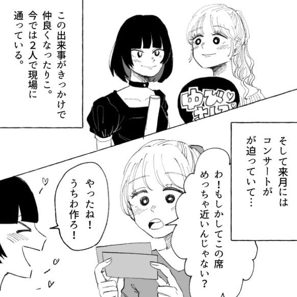 主人公は同じアイドルグループを推している、オタ友のりこちゃんと一緒にコンサートへ行くことに。