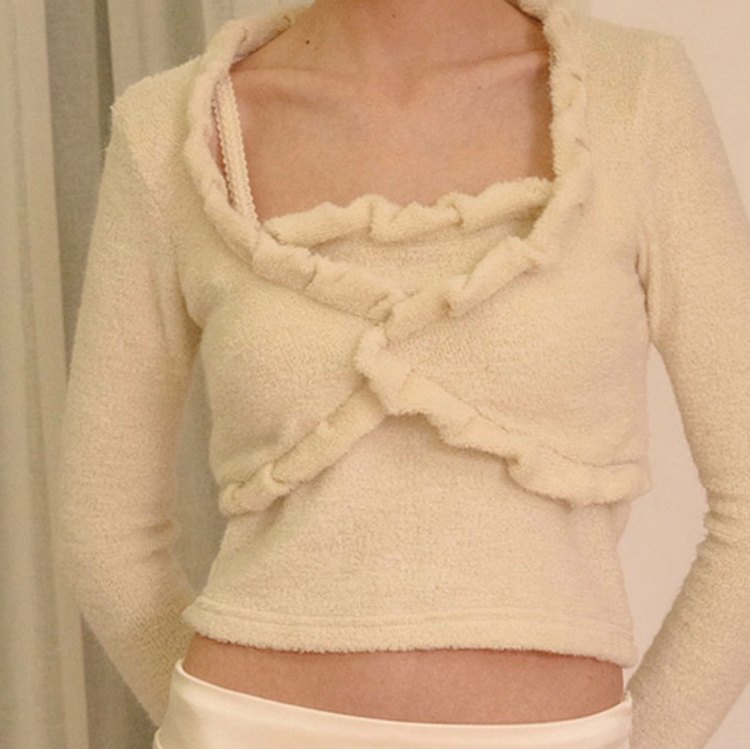 「このコンパクトな丈感とフリルディテールがほかにはない可愛さ♡ ちょっと肌寒い春先のコートのなかに着たり、