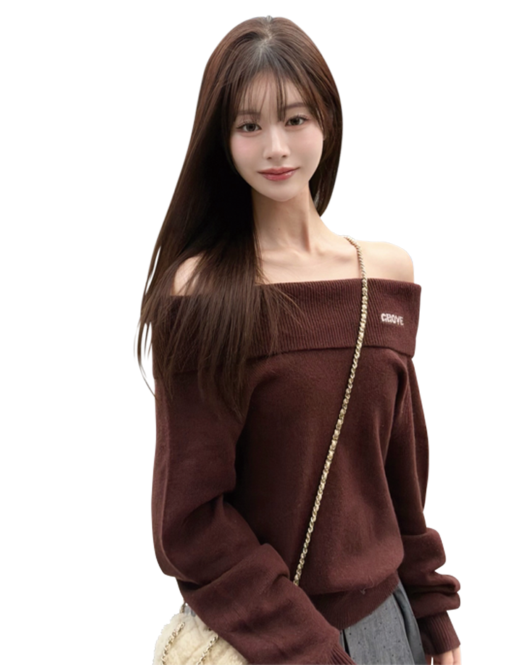 ほっこり見えがちなニットもオフショルデザインだからヘルシーな印象