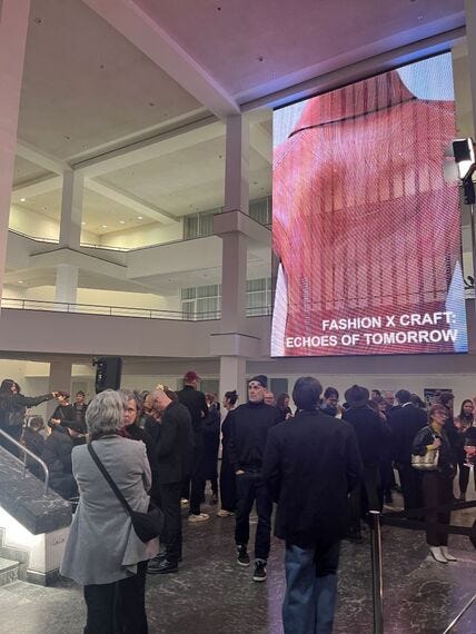バスケット織りの技法で制作された硬質なジャケット、繊細な網のように身体を包むボビンレースのドレス、薄い木材で作られ袖部分に重厚な金属を組み合わせたジャケットなど、素材の対比が見事に表現されている。想像力が豊かであるだけでなく、高度な技術とクラフトの必要性を感じさせる作品群が並ぶ。同展は、伝統的な技術と現代的なデザインを組み合わせた作品を展示することによって、来場者にクラフトの価値やファッションの未来について考えるきっかけを与える内容となっている。