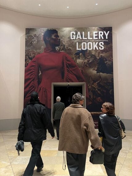 同館の前方エリアで開催されている「Gallery Looks. Fashion Stagings at the Gemäldegalerie」では、13世紀〜18世紀初頭のヨーロッパを代表するオールドマスターの名画と現代ファッションフォトやデザインとの対話を提示。同展は、オールドマスターの構図、光の使い方、象徴性が現代のファッションデザインの中にどのように再現されているかを探求してきたドイツ人写真家ラルフ・メッケの提案によって実現した。