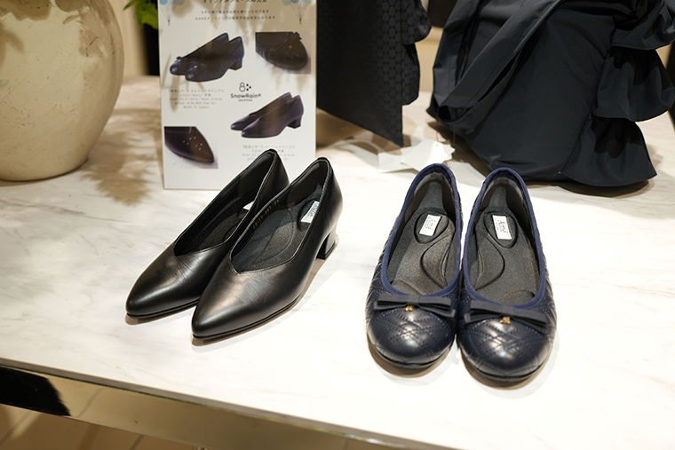 期間限定店だけで購入できるアイテムの企画にも注力しており、ペプラムブラウス(税込み1万4900円)を数量限定で出している。ドットジャカードのキャスケット(7900円)は、阪急うめだ本店の限定カラーとしてオフホワイトを投入した。このほか、受注生産で対応してきたパンプスを店頭販売している。牛革のポインテッドトウのパンプス(2万4900円)と、羊革のラウンドトウのパンプス(2万6900円)で、両方とも革に防水加工を施している。