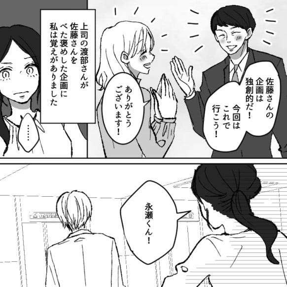 永瀬くんの企画内容と酷似していることを、佐藤さんに指摘した主人公。