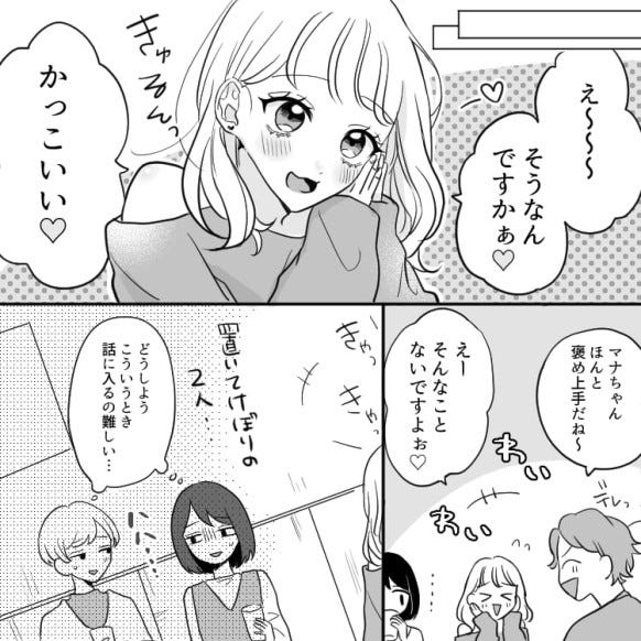 誘われて合コンに行ったものの、マナに下げる発言をされたユイカ。