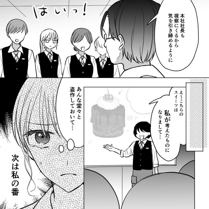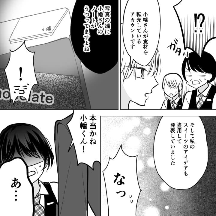 ある日、新作スイーツのアイデアをお局に横取りされてしまいます。納得できず店長に相談するも、なぜか信じてもらえず困惑。