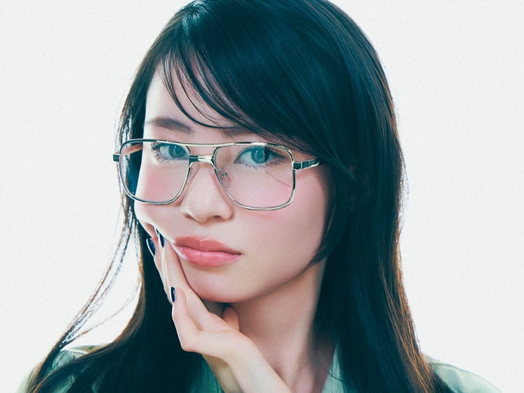 まんまるフェイスを強調しないために、カクカクとしたクールなフレームが正解。スクエア特有のキレ味が、持ち前の愛嬌フェイスを大人っぽくアプデしてくれる♡