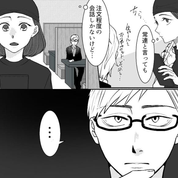 主人公は居酒屋でバイトをしていて、いつもお店に来る常連さんがいます。