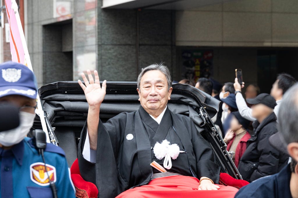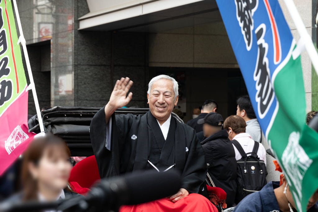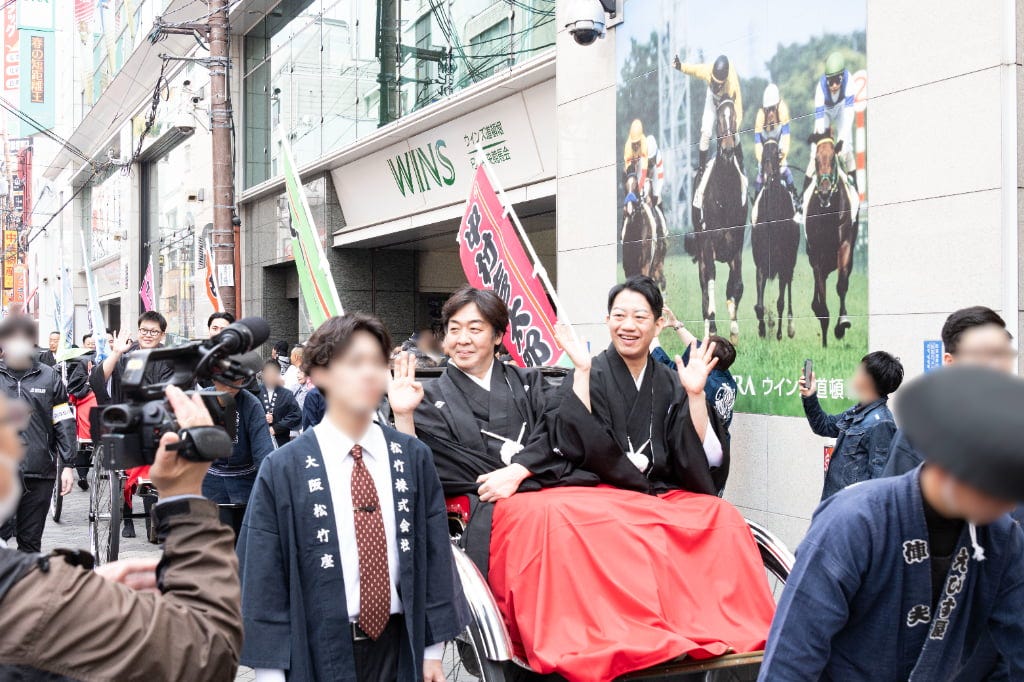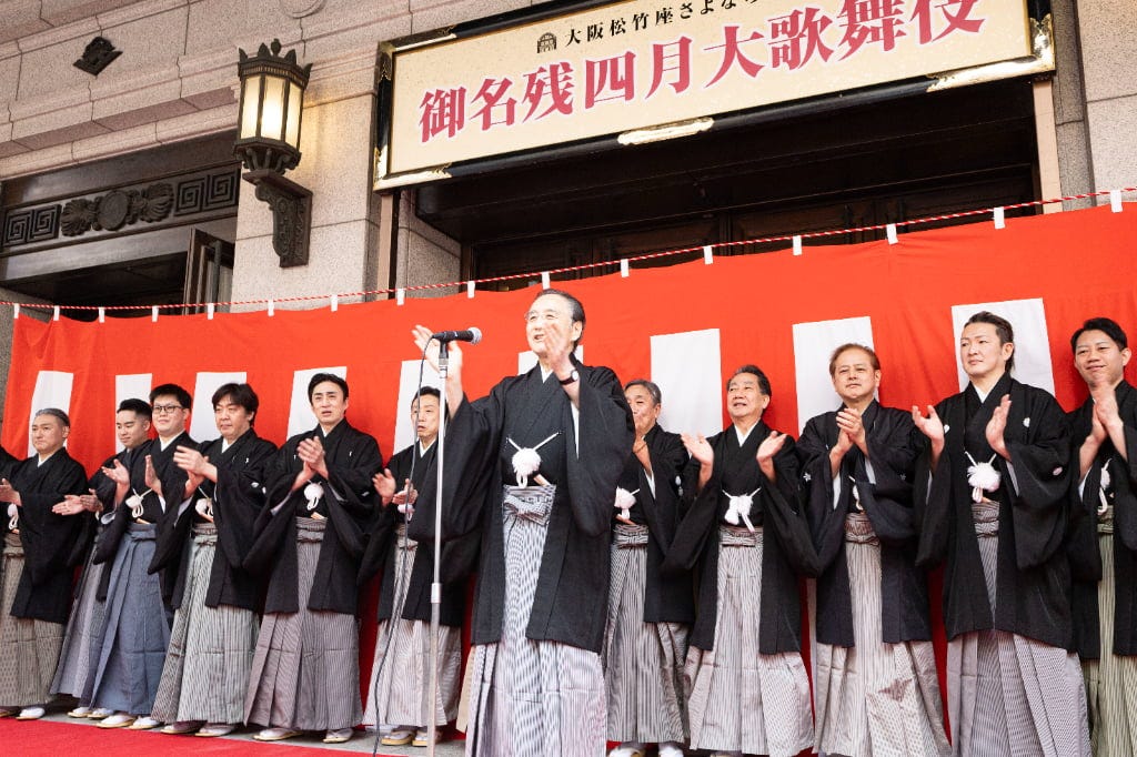 2026年4月3日(金)から大阪松竹座さよなら公演「御名残四月大歌舞伎」を上演する大阪松竹座。その公演前となる3月29日(日)に「大阪松竹座 御名残道頓堀お練り」を実施。東西の豪華出演者たちが、道頓堀を人力車でお練りしたあと、劇場前で挨拶を行いました。