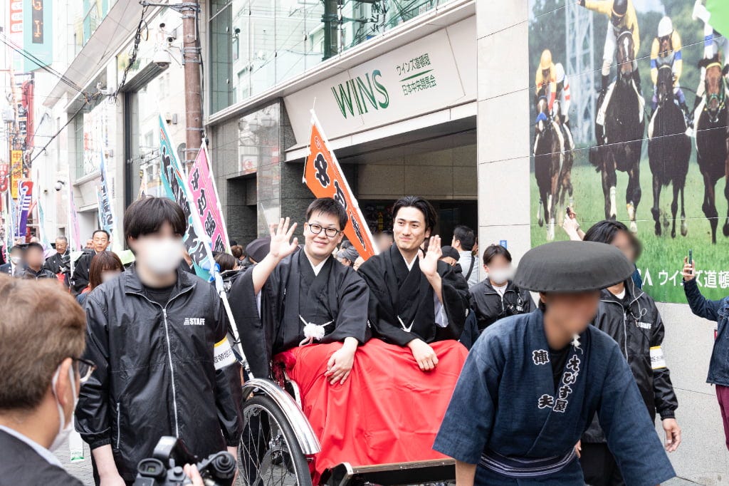 出演者たちは笑顔でその声に応えるなど、終始リラックスした表情でお練りを楽しんでいます。