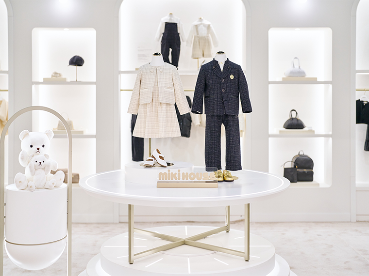 三起商行は「ミキハウス」の最高級ライン「ミキハウスゴールドレーベル」26年秋冬物で、提案する着用シーンを広げた。パーティーや発表会を想定したフォーマルウェアを作る一方で、ルームウェアを充実した。