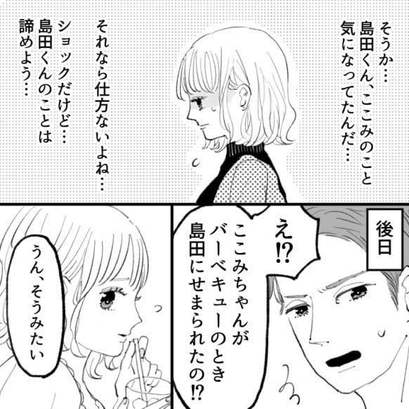 そこに来ていた島田くんに惹かれ、主人公は島田くんが気になっているのを友だちのここみちゃんに報告しました。