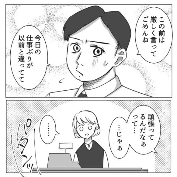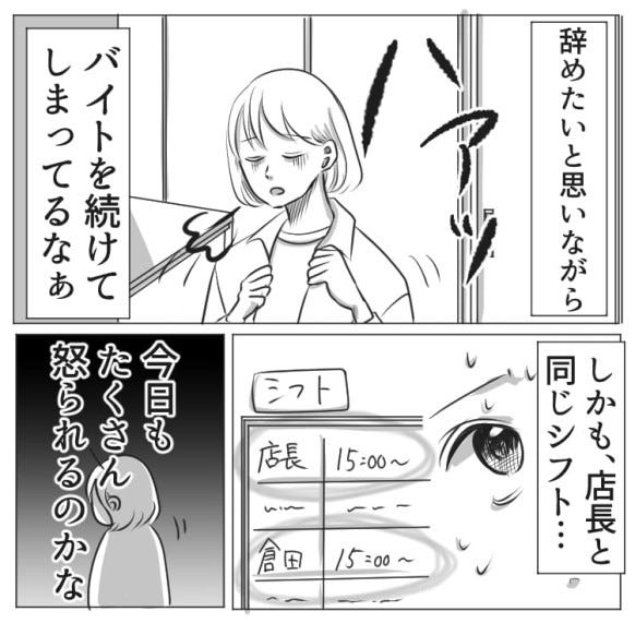 勤め先の店長がとても怖い人で、主人公は業務中に緊張して失敗する日々が続いていました。