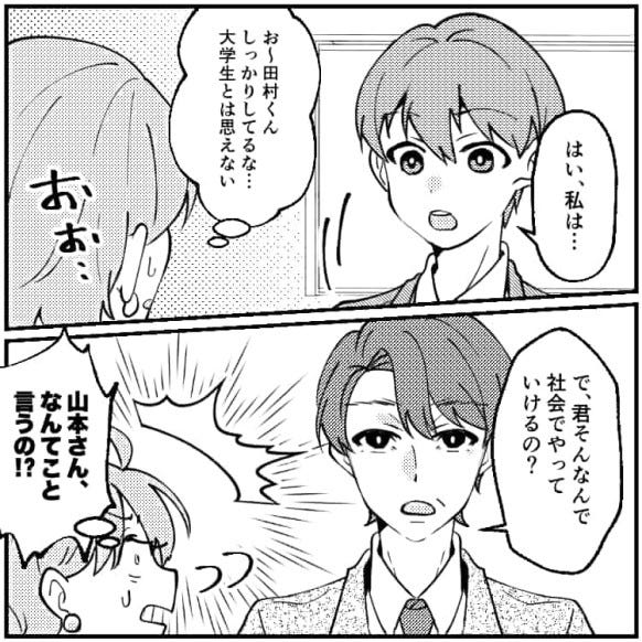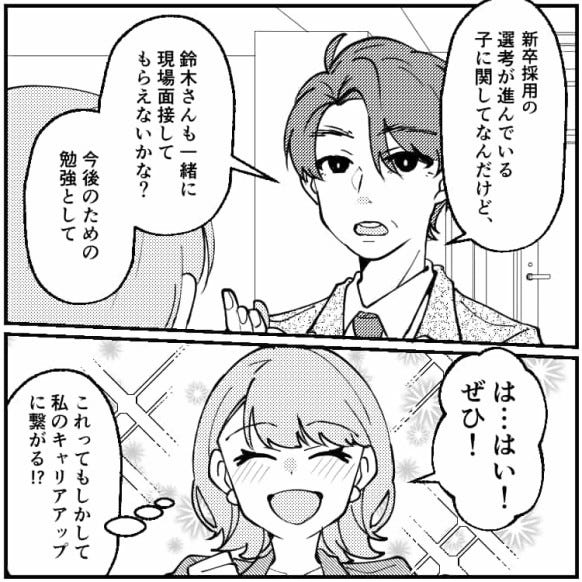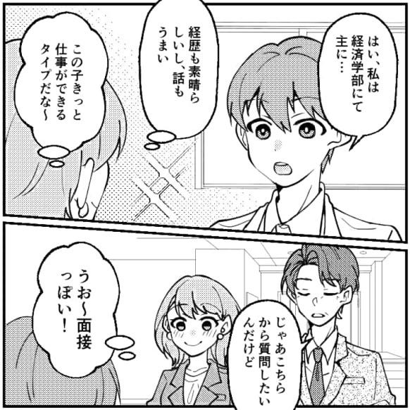 主人公はある日上司の山本さんに、新卒採用の面接官に選ばれます。