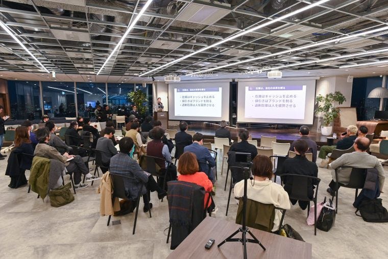 今回は、東京・六本木のヤプリのオフィスを会場に、スタートアップ4社が登壇した。また、ゲストコメンテーターにシップス、ビームスのデジタル・DX(デジタルトランスフォーメーション)担当者を招へい。先進事業者ならではの着眼点から、各社への講評や質疑が交わされた。