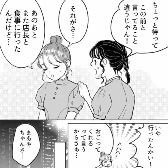 ある日店長と2人きりで食事に行ったまあやは、突然「店長を告発する」と言い出して……?