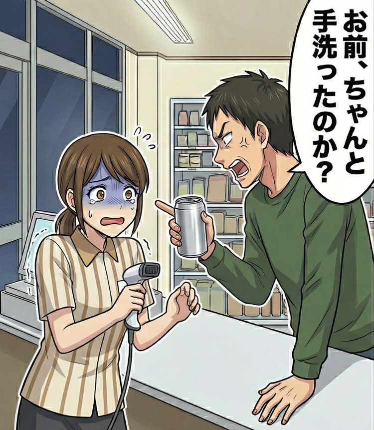 「お前、ちゃんと手洗ったのか?」深夜のコンビニバイトに現れた、潔癖症のクレーム客。接客すると“衝撃発言”を連発して大暴れ…!?追い詰められた私を救ってくれた【まさかの人物】とは...!