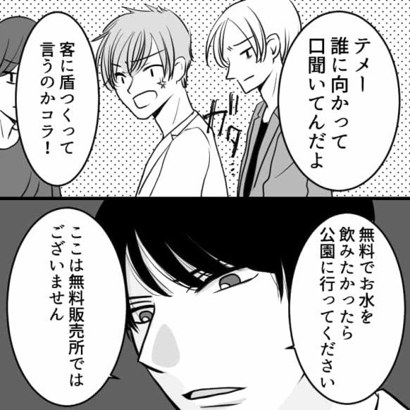 「水3つで!」舐めた態度をとる迷惑客...困った主人公を救ってくれた【まさかの人物】とは!?