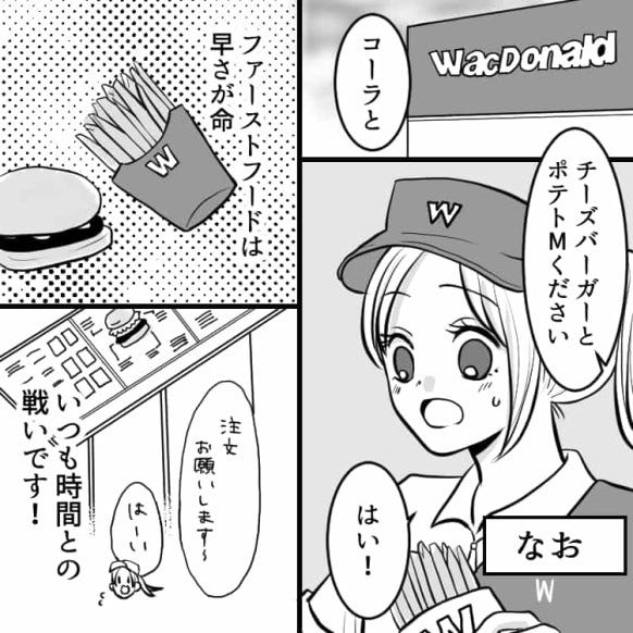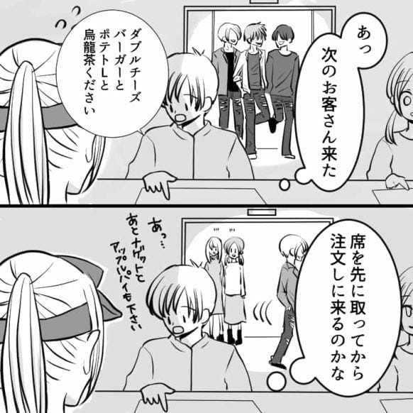主人公はファーストフード店でバイトしています。