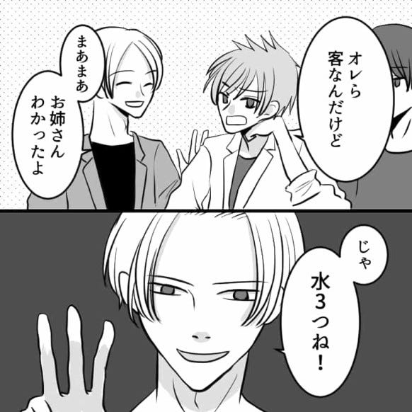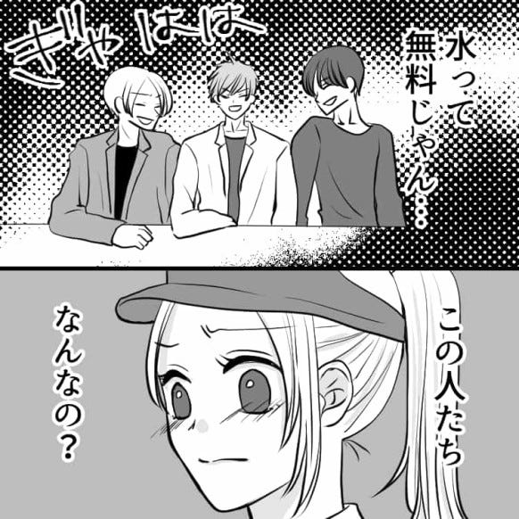 主人公はなにも注文しないお客さんに注意をしますが、返答は「水3つで!」。