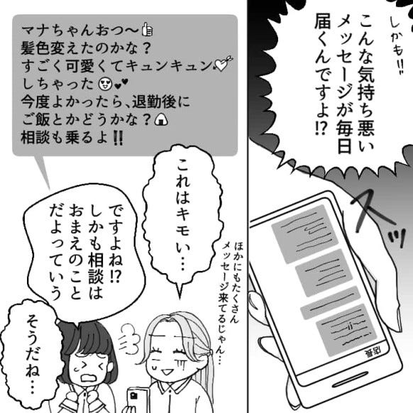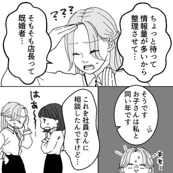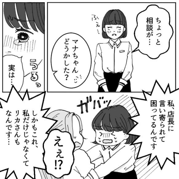 「店長に言い寄られて困ってるんです」既婚者なのに...セクハラ!?主人公は後輩から【まさかの相談】を受けて...?