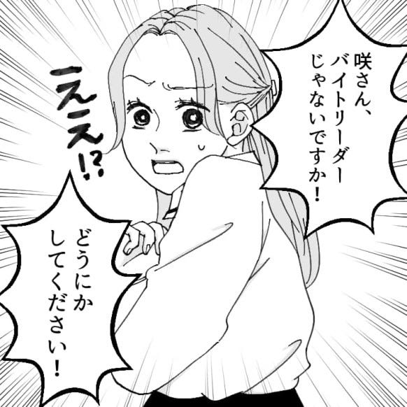 主人公・真鍋咲は大学生の傍ら、バイトリーダーをしています。