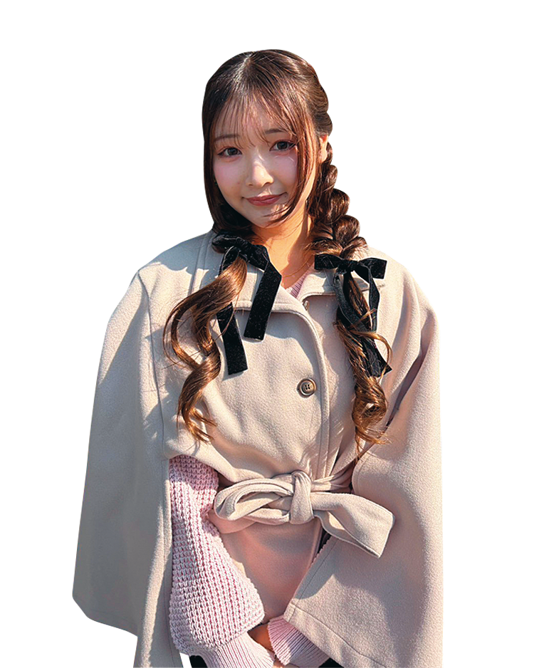 「甘さはあるけど、子どもっぽくなりすぎないように、チークでほんのり血色感を出しつつ、ベースメイクはセミマットに。