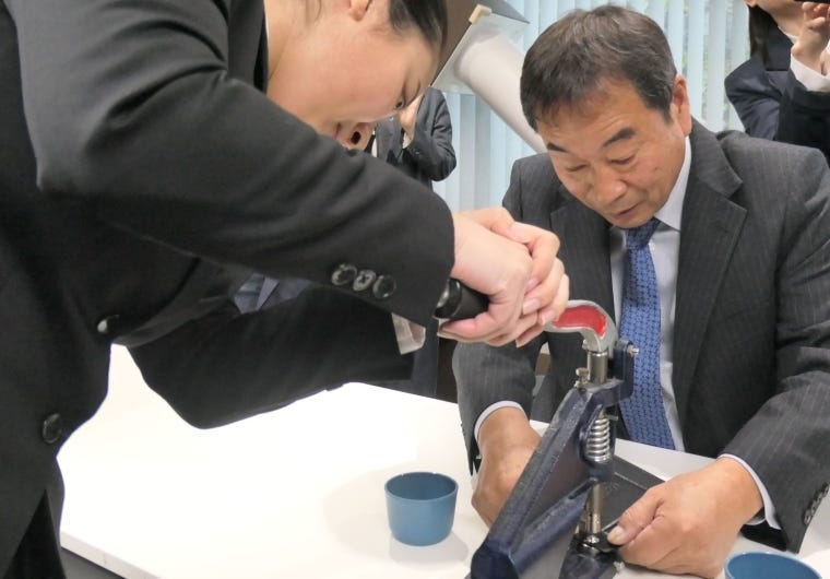 打ち初め式を企画した背景の一つには、「ホックが生活に身近な物の割には詳しく知られていない」(同社)ことがある。「打ち初め式を通じ、自社商品に対する理解と愛着を深め、モリト社員としての第一歩を踏み出してほしい」と狙いを述べた。